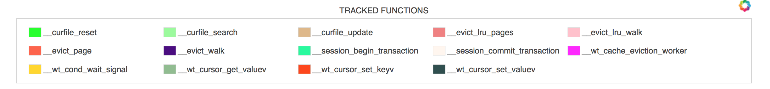 Next you see a legend that shows all functions that were called during this execution interval and their corresponding colors.