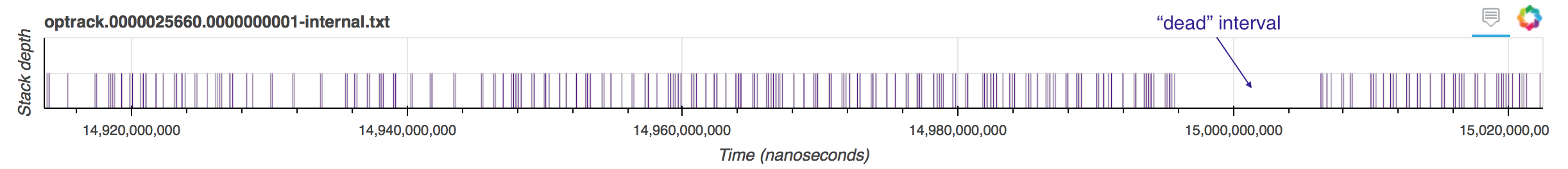 By hovering over the colored bars corresponding to functions, you will see a box appear telling you the name of the function, how long it took and its original timestamp in your operation tracking log file. This way, if you are suspicious about the correctness of your log or want to go back to it for some reason, you know what to look for.